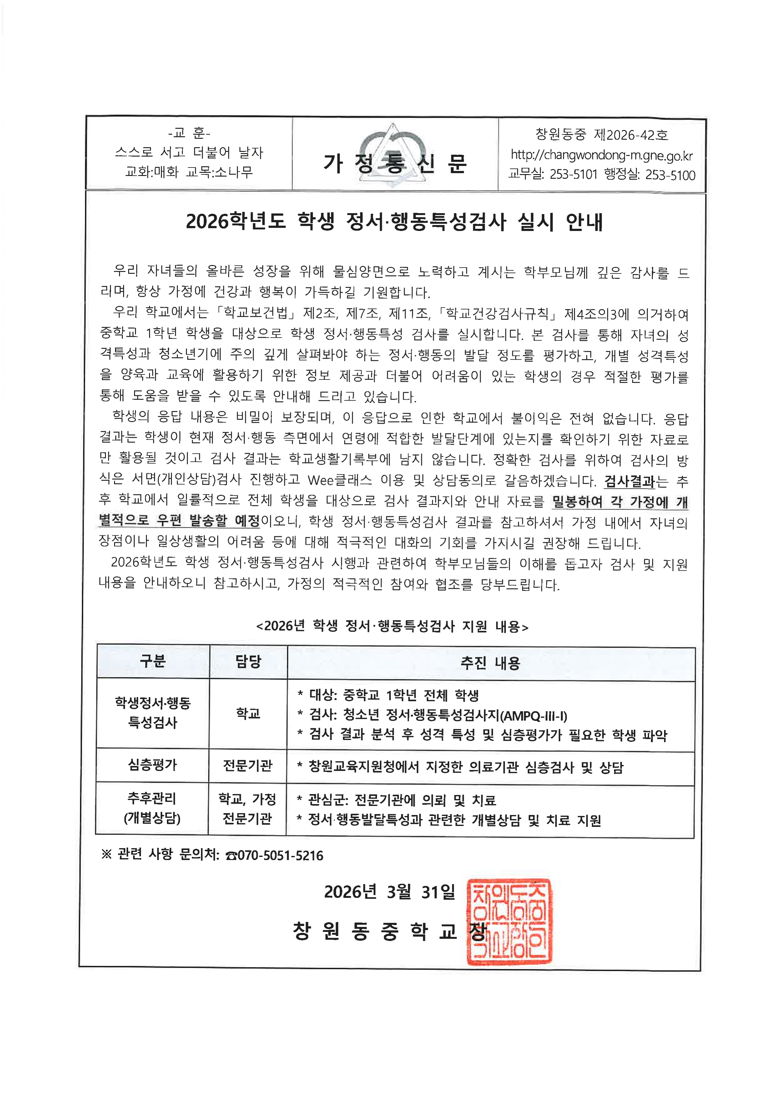 2026학년도 학교장 허가 교외체험학습 출결규정 개정 안내