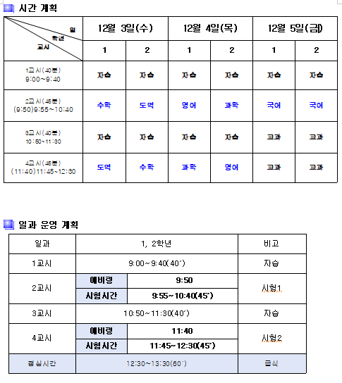 2025학년도 1, 2학년 2학기 2회고사 실시 계획 안내